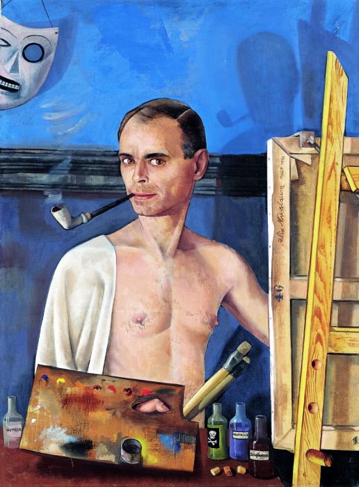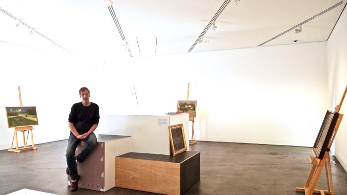 Die „Landstraße mit malendem Felix Nussbaum“ ist ein schönes Beispiel für die humoristischen Bildideen, die Nussbaums Gemälde Ende der 1920er Jahre kennzeichnet. Kuratorin Anne-Sibylle Schwetter wird bei der Vorstellung unterstützt von Superintendent Dr. Joachim Jeska. Felix Nussbaum, Landstraße mit malendem Felix Nussbaum, 1928, Öl auf Leinwand, 71 x 42 cm Privatbesitz